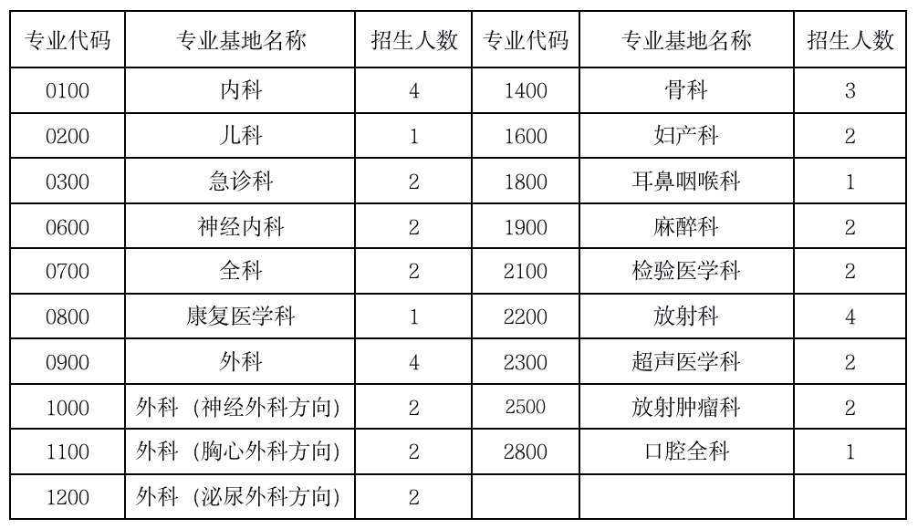注:全科、兒科、婦產(chǎn)科、麻醉科、急診科、康復醫(yī)學科為緊缺專業(yè),不受招生計劃人數(shù)限制。