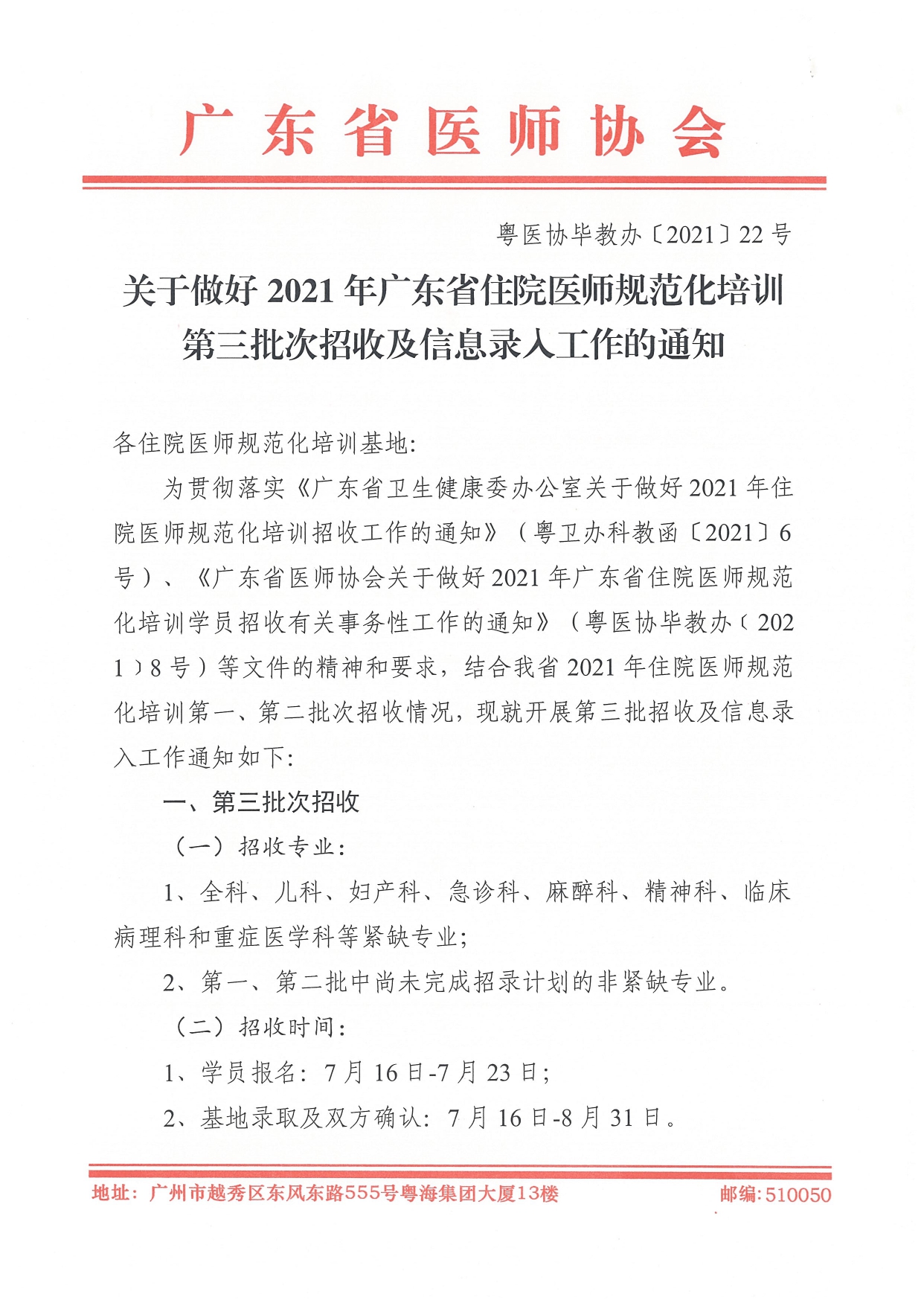 日前,“廣東省”正式發(fā)布“2021年廣東省住院醫(yī)師規(guī)范化培訓第三批次招收及信息錄入工作”,為方便大家查看,醫(yī)學教育網(wǎng)特地為大家整理了以下信息,詳細內(nèi)容如下: