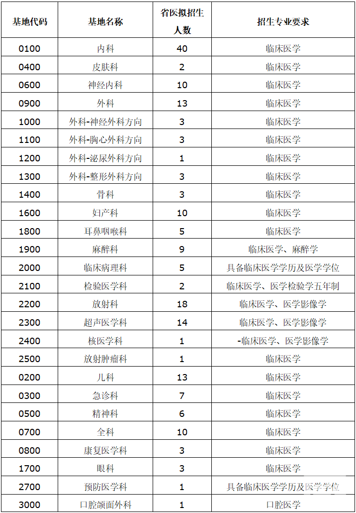 (一)全科、兒科、精神科、婦產(chǎn)科、麻醉科:為國家急需緊缺專業(yè),面向全國普通高等醫(yī)學院校招生。