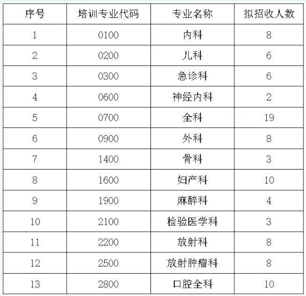 招收人數(shù)共95人,詳見下表;培訓(xùn)期限:3年。