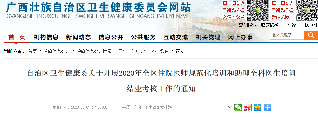 為做好2020年全區(qū)住院醫(yī)師規(guī)范化培訓(xùn)和助理全科醫(yī)生培訓(xùn)結(jié)業(yè)考核工作,根據(jù)《國家衛(wèi)生健康委人才交流服務(wù)中心關(guān)于做好2020年度住院醫(yī)師規(guī)范化培訓(xùn)和助理全科醫(yī)生培訓(xùn)結(jié)業(yè)考核有關(guān)工作的通知》(衛(wèi)人才發(fā)〔2020〕26號(hào))及《自治區(qū)衛(wèi)生計(jì)生委關(guān)于做好住院醫(yī)師規(guī)范化培訓(xùn)制度銜接工作的通知》(桂衛(wèi)科教發(fā)〔2016〕5號(hào))等要求,現(xiàn)將有關(guān)事項(xiàng)通知如下: