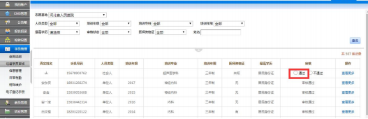 在所需錄取的學(xué)員信息后點(diǎn)選“通過(guò)”按鈕