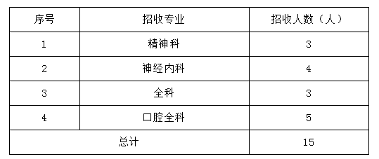 按照省衛(wèi)生健康委下達的招收計劃,共招收15人。醫(yī)院招收向國家緊缺專業(yè)傾斜,其他專業(yè)擇優(yōu)錄取,詳細招收專業(yè)及人數(shù)見下表。