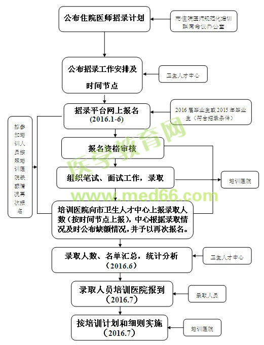 醫(yī)學(xué)教育網(wǎng)小編整理了上海市住院醫(yī)師規(guī)范化培訓(xùn)招錄工作流程圖,具體內(nèi)容如下: