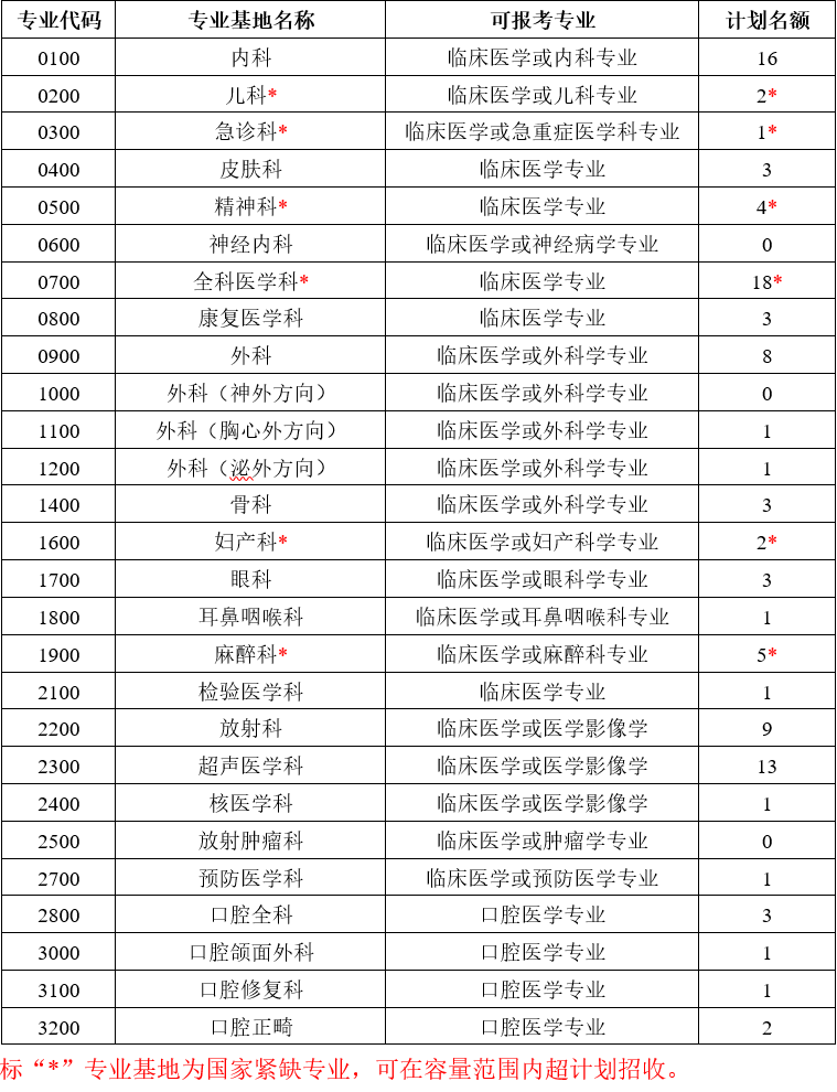 宜昌市中心人民醫(yī)院2020年擬對外招生計(jì)劃名額(不含四證合一)如下: