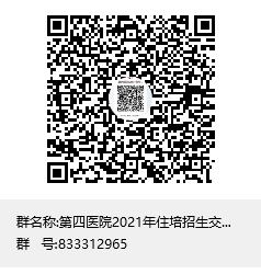 申請(qǐng)參加我院住院醫(yī)師規(guī)范化培訓(xùn)的考生,請(qǐng)加入“第四醫(yī)院2021年住培招生交流群”QQ群(群號(hào):833312965),以便于及時(shí)獲取招錄信息。申請(qǐng)加入時(shí)請(qǐng)注明“專業(yè)、姓名”。