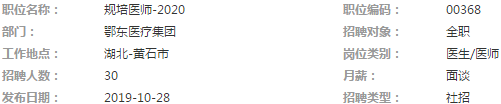 以上就是小編為大家整理的湖北黃石市中心醫(yī)院招聘規(guī)培醫(yī)師30人,請(qǐng)大家多多關(guān)注醫(yī)學(xué)教育網(wǎng),我們會(huì)隨時(shí)更新更多更好的關(guān)于醫(yī)學(xué)知識(shí)、醫(yī)療招聘及考試輔導(dǎo)等相關(guān)內(nèi)容,敬請(qǐng)期待!