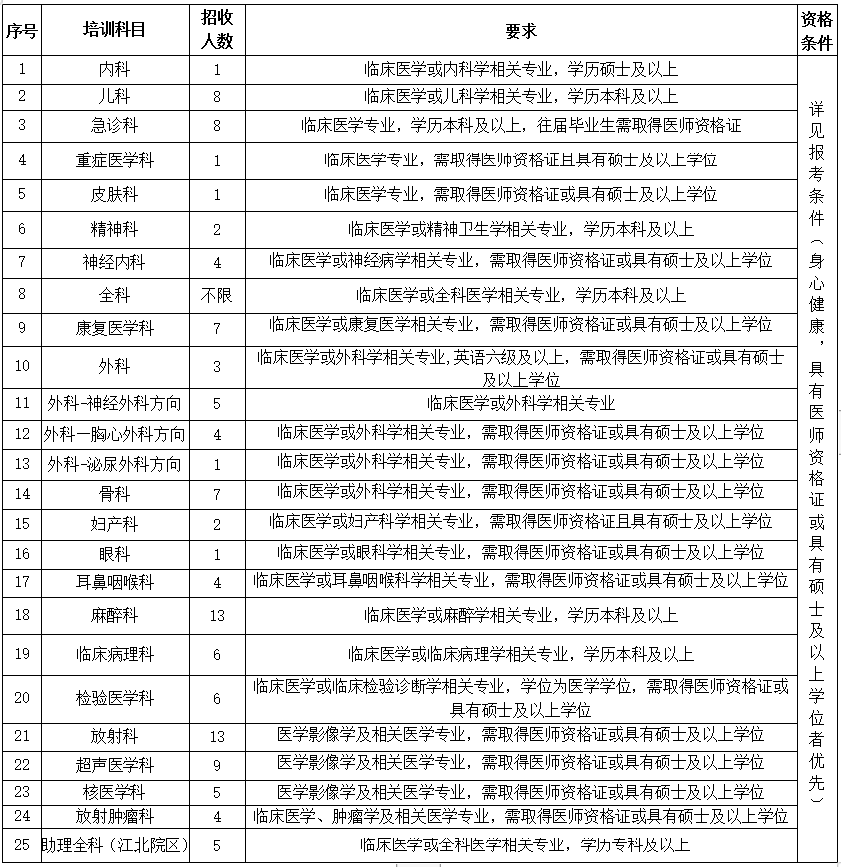 3.身心健康,能勝任住院醫(yī)師規(guī)范化培訓的臨床學習和工作。