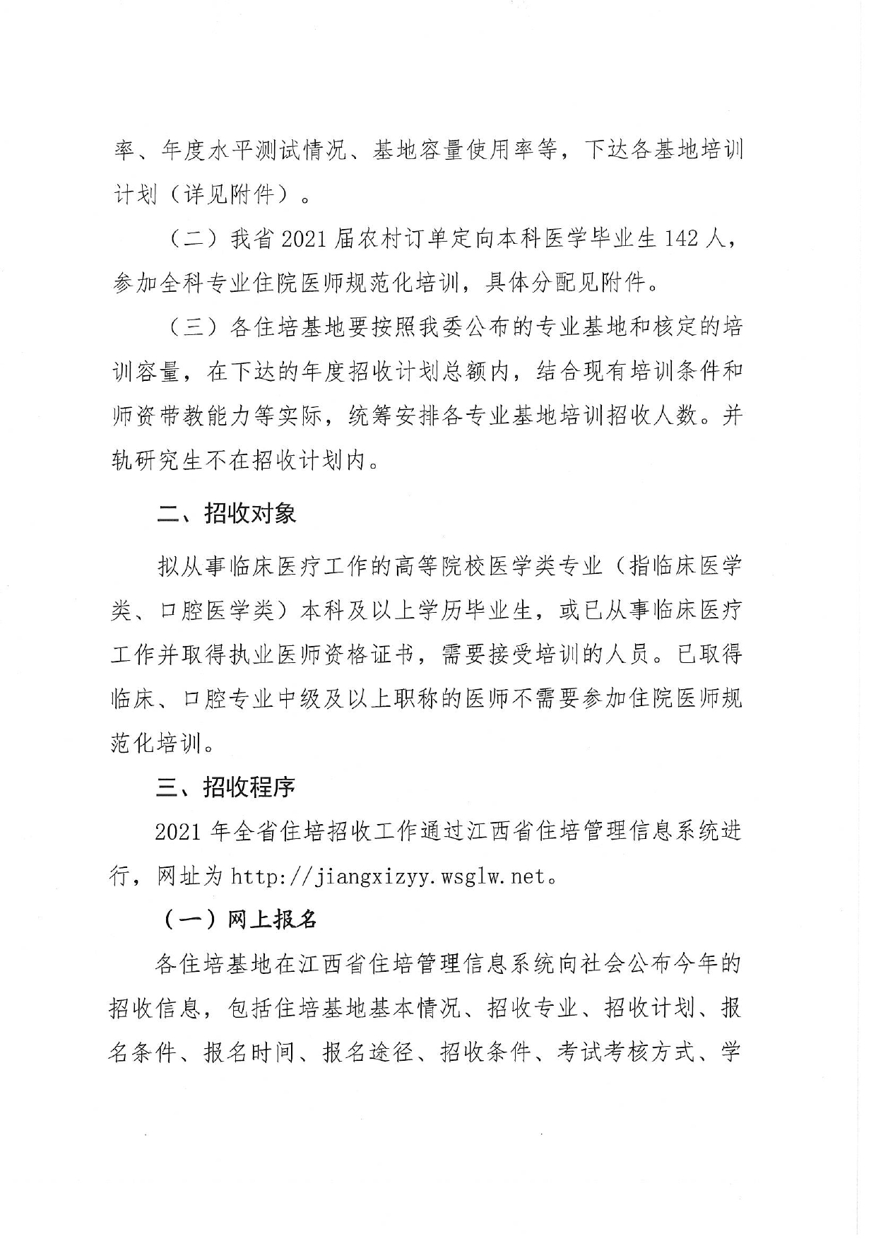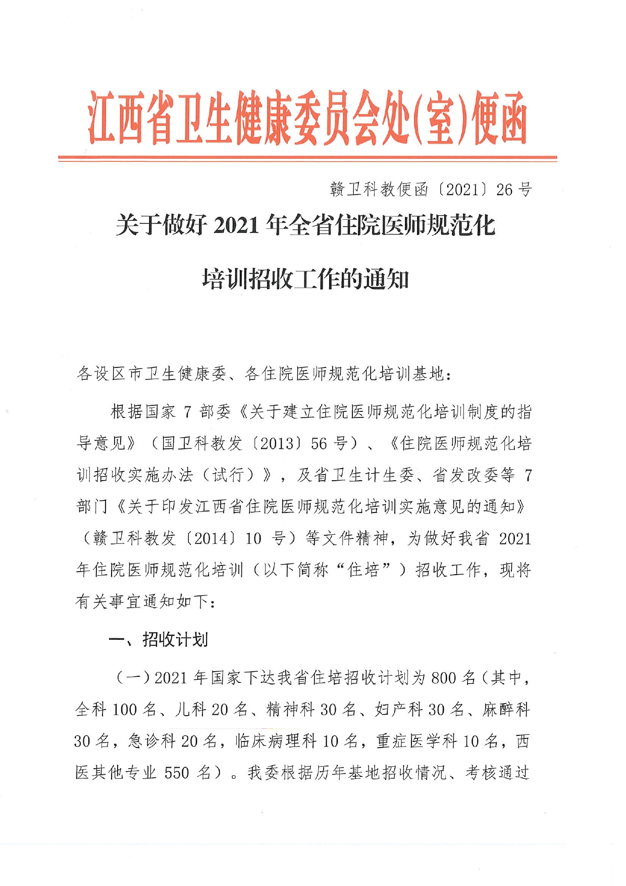 2021年江西省住院醫(yī)師規(guī)范化培訓(xùn)招生計(jì)劃表
