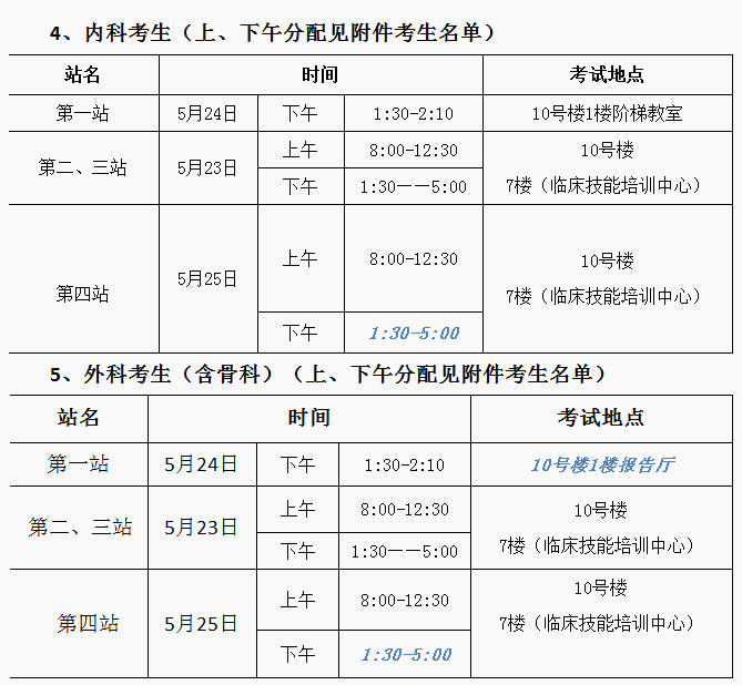 | 第二、三站 | 5月24日 | 上午 | 8:00—12:30 | 10號樓7樓(臨床技能培訓(xùn)中心) | |
