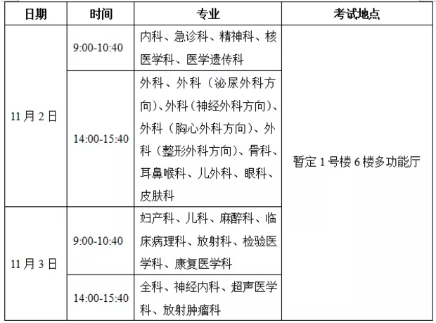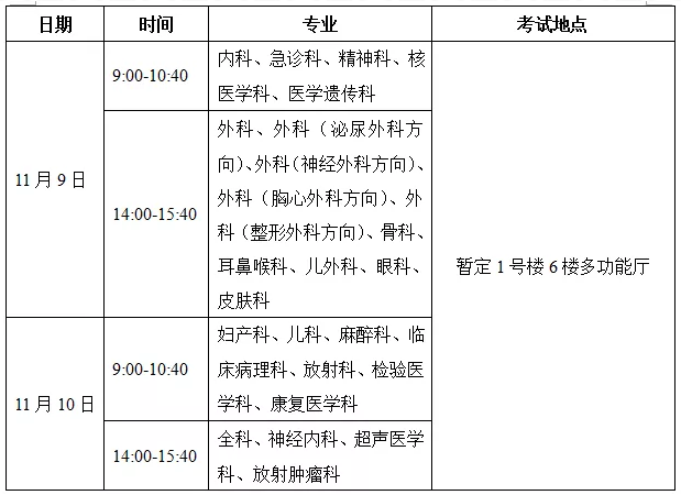 11月9-10日,開展住院醫(yī)師規(guī)范化培訓(xùn)年度業(yè)務(wù)水平正式測試。時(shí)間地點(diǎn)如下: