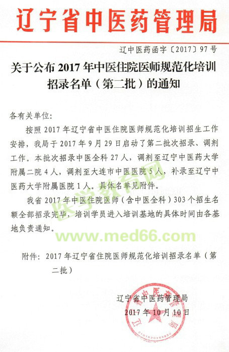 關(guān)于公布2017年中醫(yī)住院醫(yī)師規(guī)范化培訓(xùn)招生名單(第二批)的通知已經(jīng)公布,2017年9月29日啟動(dòng)第二批招收計(jì)劃,遼寧省303個(gè)招生名額全部招收完畢,具體招收名單如下: