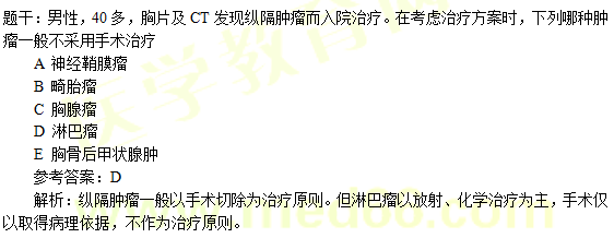為幫助大家復(fù)習(xí)備考住院醫(yī)師規(guī)范化培訓(xùn)考試,今天醫(yī)學(xué)教育網(wǎng)小編為大家分享這篇文章:規(guī)培練習(xí)題之心胸外科練習(xí)題,希望可以有所幫助!