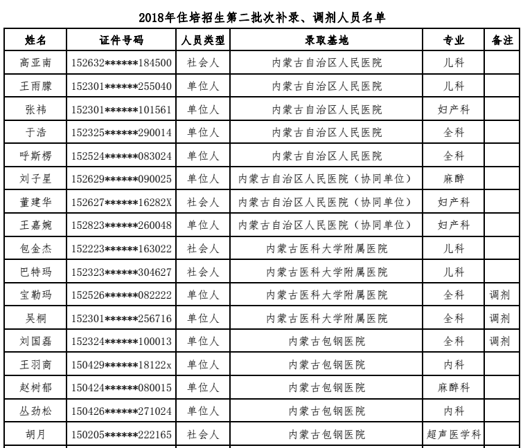 點擊下載:2018年內(nèi)蒙古住培招生第二批次擬錄取人員名單.pdf