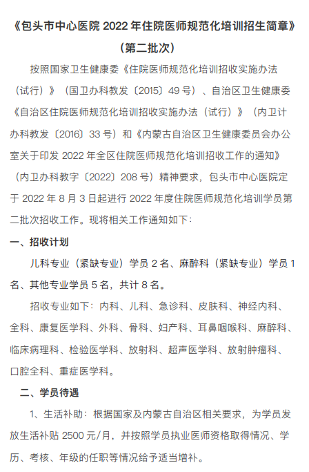 相關(guān)附件:包頭市中心醫(yī)院2022年住院醫(yī)師規(guī)范化培訓(xùn)招?簡(jiǎn)章(第二批次)
