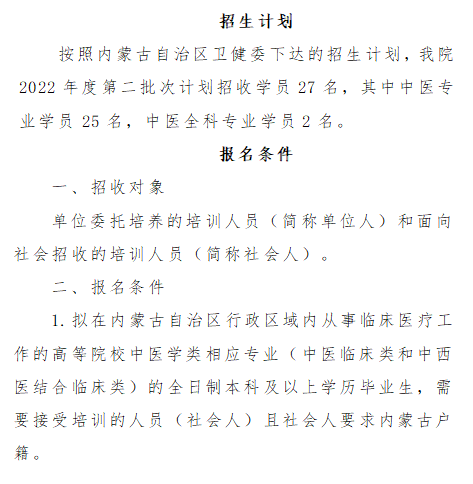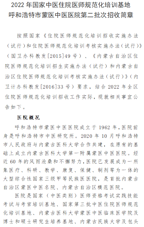 相關(guān)附件:2022年國家中醫(yī)住院醫(yī)師規(guī)范化培訓(xùn)基地呼和浩特市蒙醫(yī)中醫(yī)醫(yī)院第二批次招收簡章