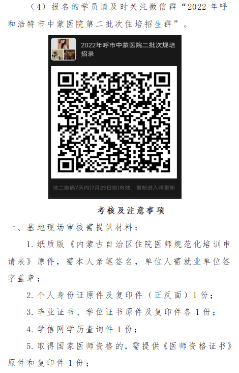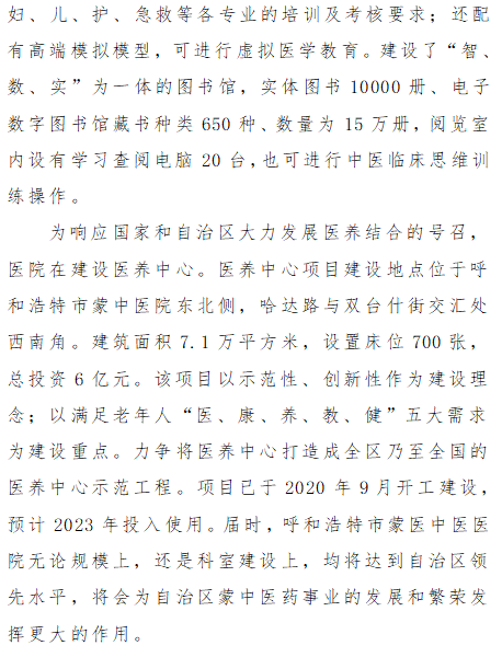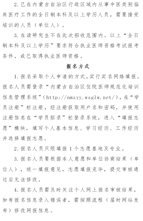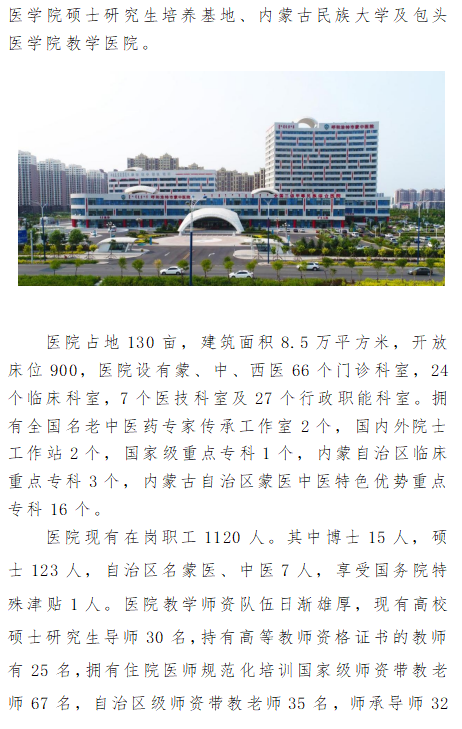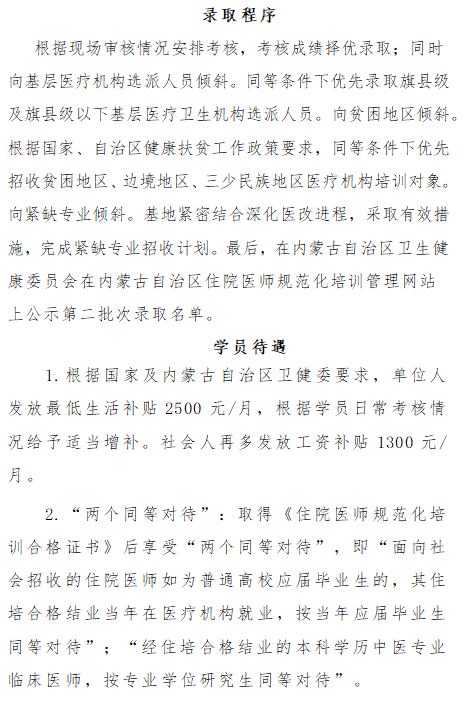以上就是“2022年國家中醫(yī)住院醫(yī)師規(guī)范化培訓(xùn)基地呼和浩特市蒙醫(yī)中醫(yī)醫(yī)院第二批次招收簡章”的全部內(nèi)容,由醫(yī)學(xué)教育網(wǎng)小編整理,希望對您有所幫助!想要了解更多關(guān)于住院醫(yī)師規(guī)范化培訓(xùn)考試相關(guān)政策,請繼續(xù)關(guān)注此欄目!