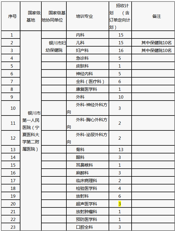 醫(yī)院23個專業(yè)基地將面向全國招收住院醫(yī)師規(guī)范化培訓學員,優(yōu)先招生錄取緊缺專業(yè)人才(全科、兒科、精神科、婦產(chǎn)科),同時服從專業(yè)調(diào)配,具體專業(yè)及名額如下: