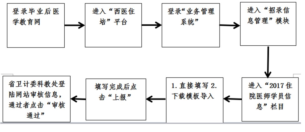 1.報(bào)送新招住院醫(yī)師信息應(yīng)為國(guó)家衛(wèi)計(jì)委公布的住院醫(yī)師規(guī)范化培訓(xùn)基地(臨床醫(yī)學(xué)類和口腔醫(yī)學(xué)類)2017年錄取學(xué)員的信息,包括全日制臨床專業(yè)碩士學(xué)位研究生納入住培渠道培養(yǎng)的人員。學(xué)員結(jié)業(yè)時(shí)按照此次報(bào)送的培訓(xùn)基地進(jìn)行審核和生成證書。