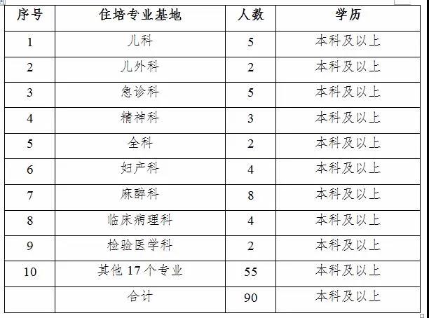 2020年共26個(gè)專(zhuān)業(yè)基地面向社會(huì)招收住院醫(yī)師規(guī)范化培訓(xùn)學(xué)員。具體名額如下: