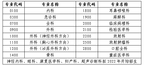 今年,我院共計招收住培醫(yī)師113人(不含“專業(yè)學(xué)位碩士研究生”名額),共16個專業(yè)可招收,專業(yè)代碼及專業(yè)名稱詳見下表: