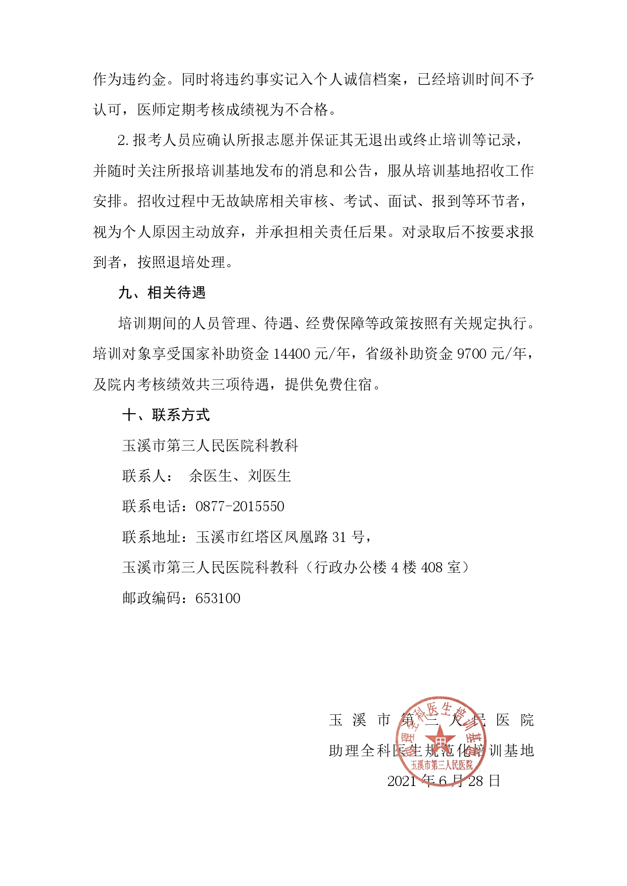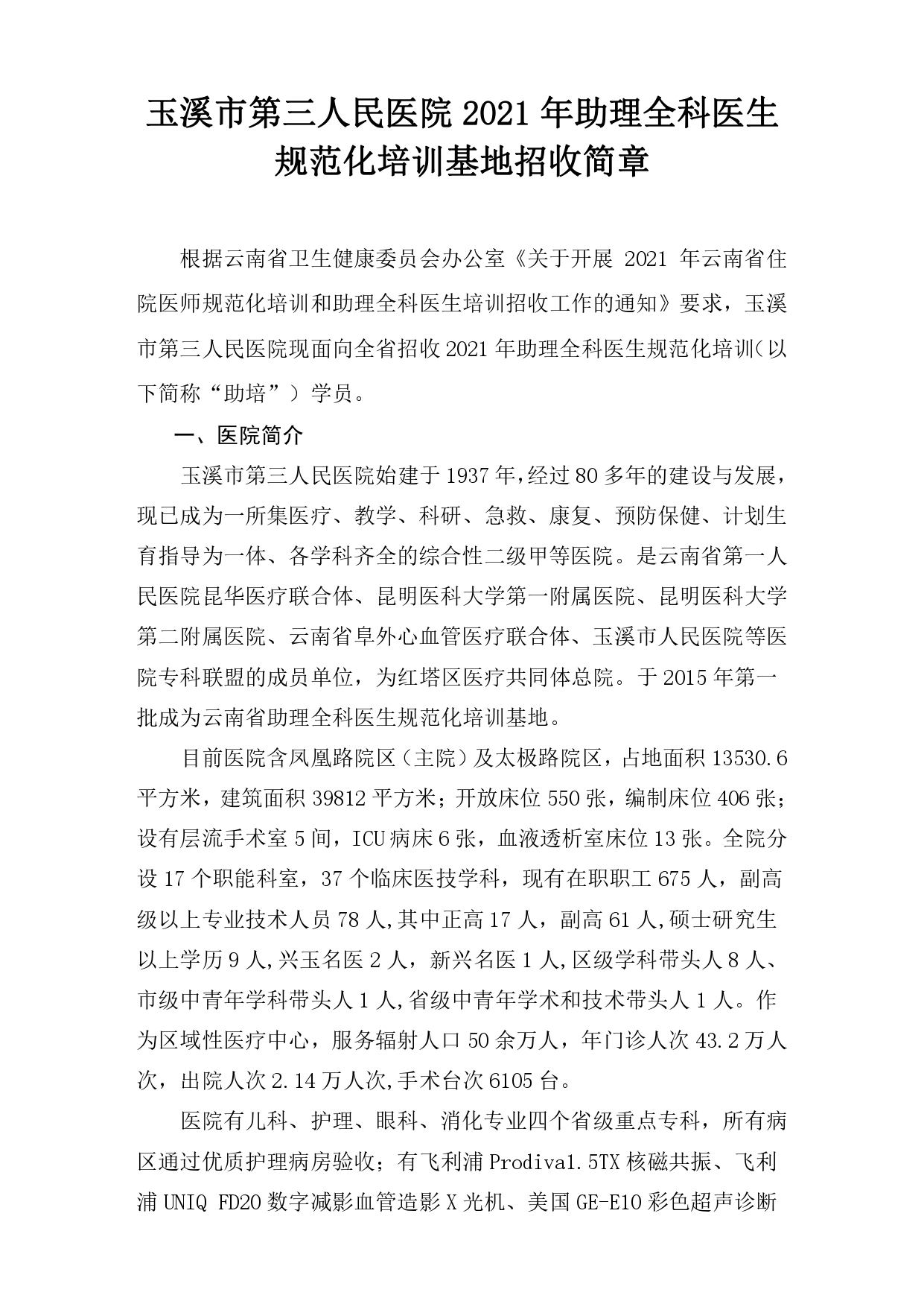 培養(yǎng)高質(zhì)量住培醫(yī)師是醫(yī)院未來發(fā)展的核心動(dòng)力!近日,“玉溪市第三人民醫(yī)院”發(fā)布了“2021年玉溪市第三人民醫(yī)院助理全科醫(yī)生規(guī)范化培訓(xùn)基地招收簡章”,正在考慮參加住培的考生們千萬不要錯(cuò)過!具體內(nèi)容如下: