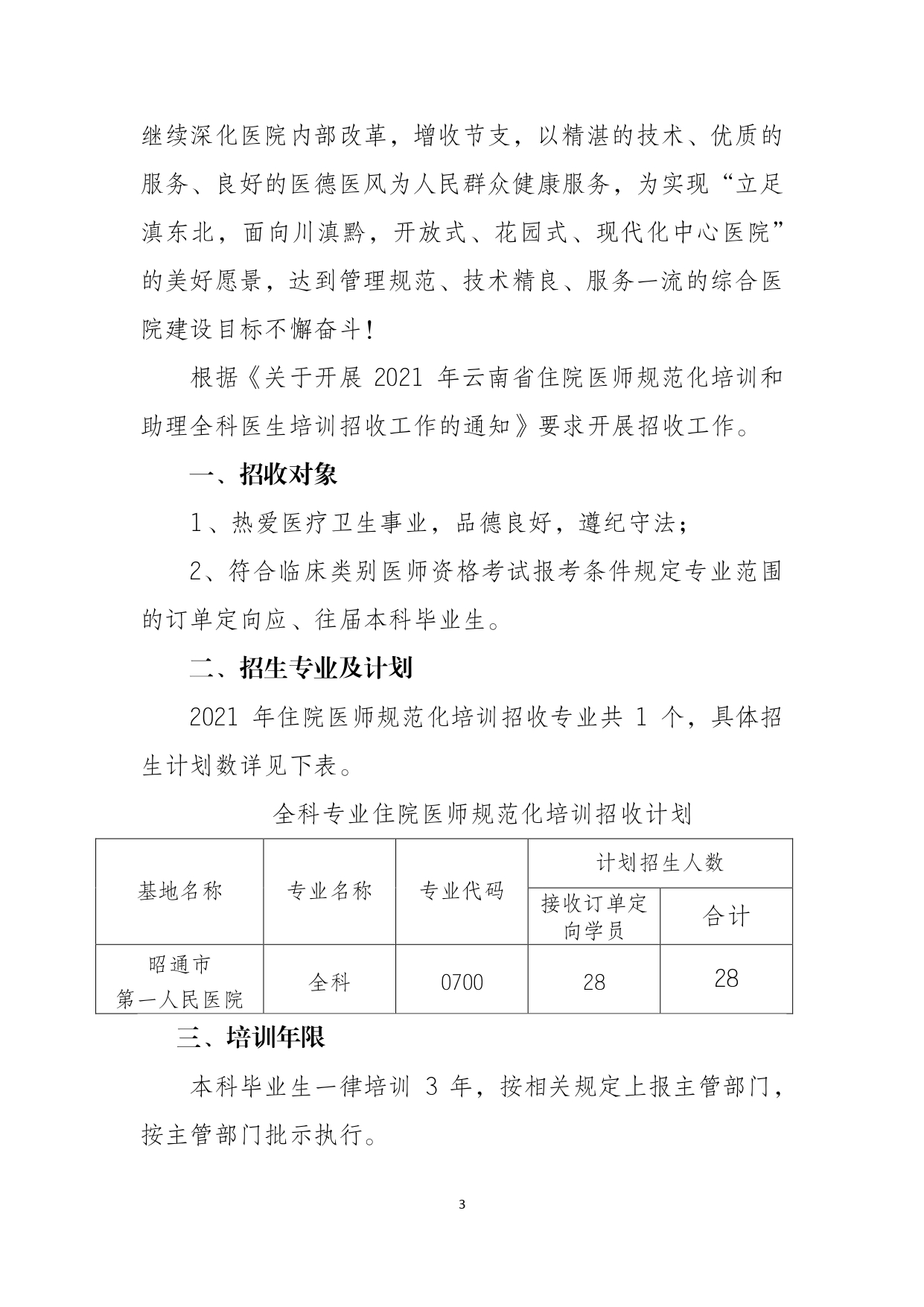 住院醫(yī)師規(guī)范化培訓(xùn)工作是醫(yī)院的頭等大事,不少醫(yī)院都會(huì)為規(guī)培生提供良好的教育以及待遇。日前,“昭通市第一人民醫(yī)院”發(fā)布“昭通市第一人民醫(yī)院2021年住院醫(yī)師規(guī)范化培訓(xùn)招生簡(jiǎn)章”,正小保為大家仔細(xì)整理了公告,具體內(nèi)容如下: