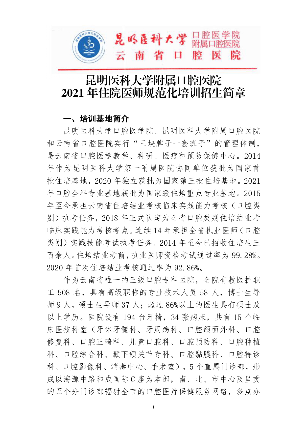 培養(yǎng)高質(zhì)量住培醫(yī)師是醫(yī)院未來發(fā)展的核心動(dòng)力!日前,“2021年昆明醫(yī)科大學(xué)附屬口腔醫(yī)院國家住院醫(yī)師規(guī)范化培訓(xùn)招生簡章”正式發(fā)布了,如何大家對(duì)于這方面內(nèi)容感興趣,請(qǐng)繼續(xù)關(guān)注下去哦!