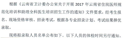 2017年玉溪市人民醫(yī)院住院醫(yī)師規(guī)范化培訓(xùn)招生考試擬錄取人員名單公布了,醫(yī)學(xué)教育網(wǎng)小編特地為大家編輯整理了,2017年玉溪市人民醫(yī)院住院醫(yī)師規(guī)范化培訓(xùn)招生考試擬錄取人員名單的相關(guān)信息。希望對大家有所幫助,醫(yī)學(xué)教育網(wǎng)會(huì)及時(shí)更新住院醫(yī)師規(guī)范化培訓(xùn)的相關(guān)信息,還請大家多多關(guān)注。