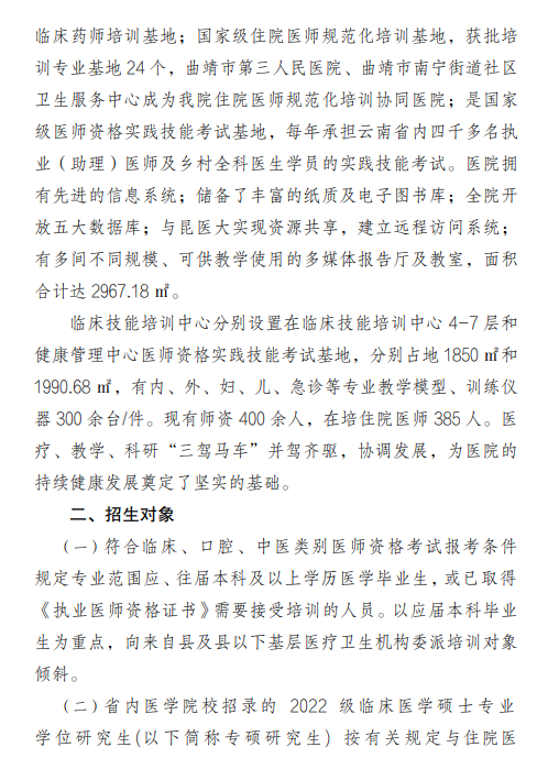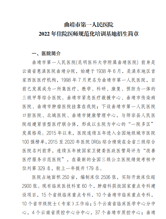 相關(guān)附件: 曲靖市第一人民醫(yī)院住院醫(yī)師規(guī)范化培訓(xùn)2022年招生簡章