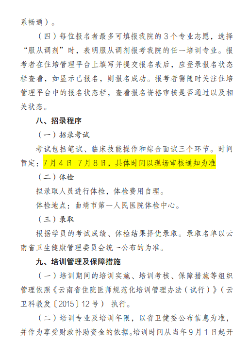 以上就是“曲靖市第一人民醫(yī)院住院醫(yī)師規(guī)范化培訓(xùn)2022年招生簡章”的全部內(nèi)容,由醫(yī)學(xué)教育網(wǎng)小編整理,希望對您有所幫助!想要了解更多關(guān)于住院醫(yī)師規(guī)范化培訓(xùn)考試相關(guān)政策,請繼續(xù)關(guān)注此欄目!