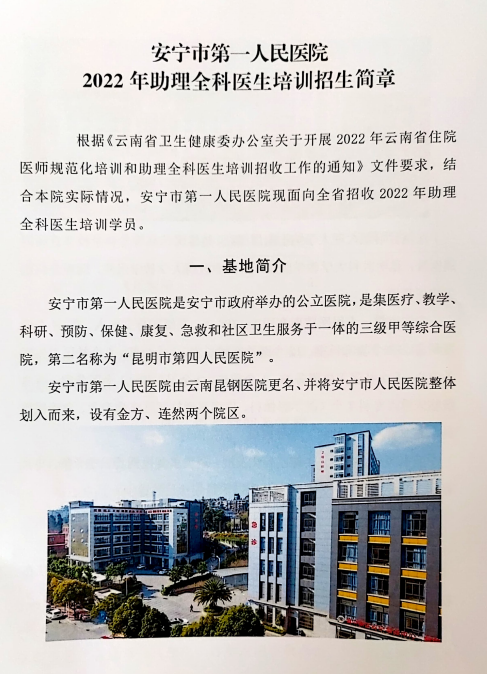 相關(guān)附件: 安寧市第一人民醫(yī)院2022年助理全科醫(yī)生培訓(xùn)招生簡(jiǎn)章