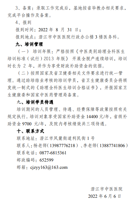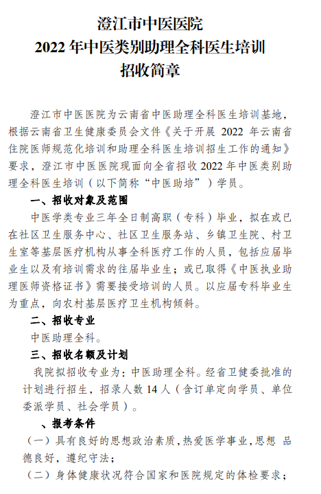 相關(guān)附件:澄江市中醫(yī)醫(yī)院2022年中醫(yī)助理全科醫(yī)生培訓(xùn)招收簡(jiǎn)章