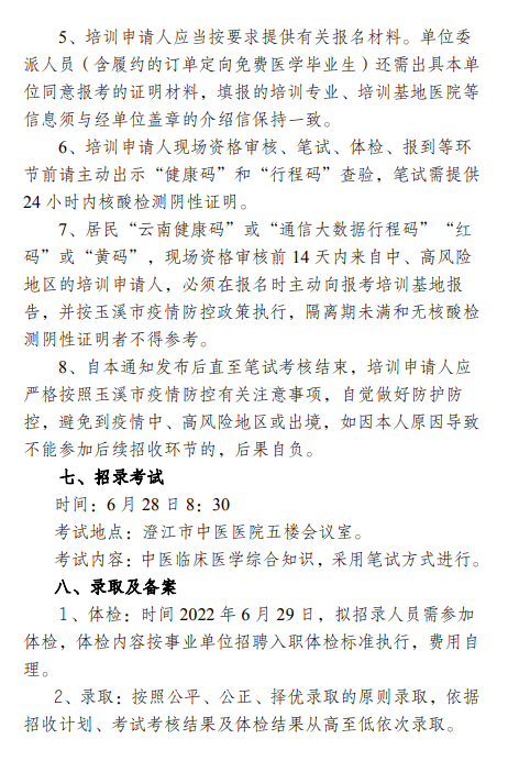 以上就是“澄江市中醫(yī)醫(yī)院2022年中醫(yī)助理全科醫(yī)生培訓(xùn)招收簡(jiǎn)章”的全部?jī)?nèi)容,由醫(yī)學(xué)教育網(wǎng)小編整理,希望對(duì)您有所幫助!想要了解更多關(guān)于住院醫(yī)師規(guī)范化培訓(xùn)考試相關(guān)政策,請(qǐng)繼續(xù)關(guān)注此欄目!