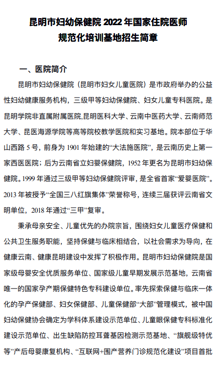 相關(guān)附件:昆明市婦幼保健院2022年住院醫(yī)師規(guī)范化培訓(xùn)招生簡章
