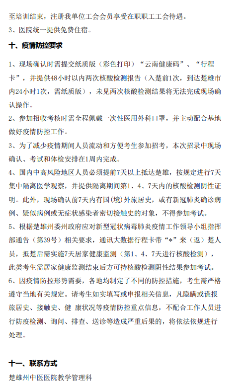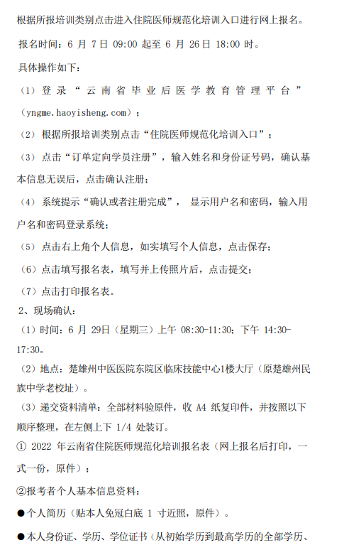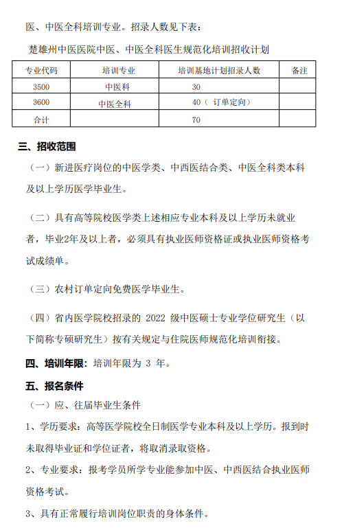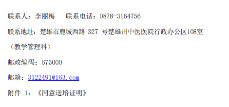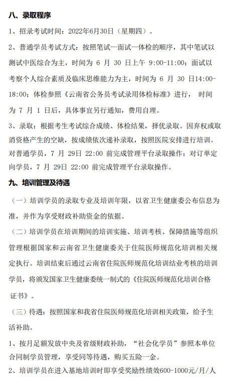 以上就是“楚雄州中醫(yī)醫(yī)院2022年國家中醫(yī)住院醫(yī)師規(guī)范化培訓基地招生簡章”的全部內容,由醫(yī)學教育網(wǎng)小編整理,希望對您有所幫助!想要了解更多關于住院醫(yī)師規(guī)范化培訓考試相關政策,請繼續(xù)關注此欄目!