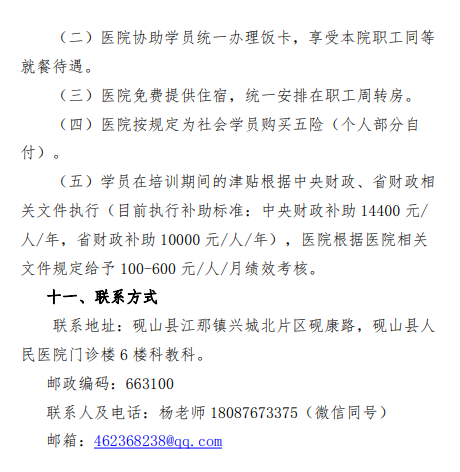 以上就是“云南硯山縣人民醫(yī)院2022年助理全科醫(yī)生培訓招生簡章”的全部內容,由醫(yī)學教育網小編整理,希望對您有所幫助!想要了解更多關于住院醫(yī)師規(guī)范化培訓考試相關政策,請繼續(xù)關注此欄目!