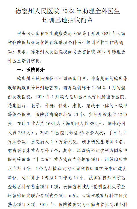 相關(guān)附件:德宏州人民醫(yī)院2022年助理全科醫(yī)生培訓(xùn)基地招收簡(jiǎn)章
