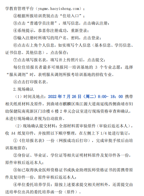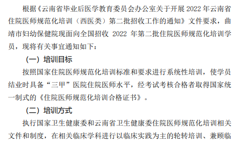 相關(guān)附件: 曲靖市婦幼保健院2022年住院醫(yī)師規(guī)范化培訓(xùn)招生簡(jiǎn)章(第二批)