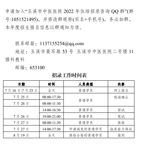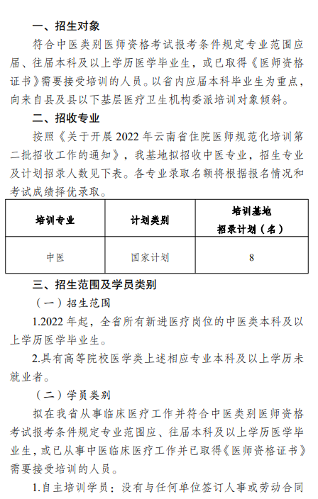 相關附件:玉溪市中醫(yī)醫(yī)院中醫(yī)(全科)住院醫(yī)師規(guī)范化培訓基地2022年第二批次招生簡章