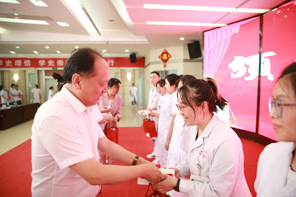 最后,管永虎書(shū)記對(duì)2022屆住培醫(yī)師的順利結(jié)業(yè)表示衷心的祝福和熱烈的祝賀。他說(shuō),看著你們成長(zhǎng)、成才,很是欣慰。愿你們回憶起第一師醫(yī)院,不忘耕耘時(shí)流過(guò)的汗,也不忘這青春篇章里最美好的時(shí)段。祝賀你們經(jīng)歷三年的打磨和錘煉,練就了為患者解除疾痛的本領(lǐng),成為合格的住院醫(yī)師,愿你們銘記“健康所系 性命相托”的誓言,帶著對(duì)未來(lái)的愿景,胸懷“救死扶傷、服務(wù)人民”的崇高理想,潛心從醫(yī),好學(xué)力行,走向新的工作和學(xué)習(xí)崗位,成為優(yōu)秀的學(xué)者、受人尊敬的專(zhuān)家教授,闖出一片屬于自己的天空。