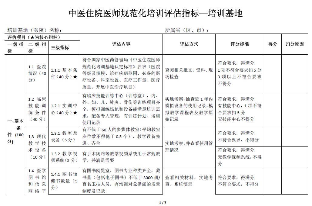 中國醫(yī)師協(xié)會發(fā)布中醫(yī)住院醫(yī)師規(guī)范化培訓(xùn)評估指標(biāo)最終版出臺啦,想了解全部評估要求嗎?醫(yī)學(xué)教育網(wǎng)幫助大家整理了中國醫(yī)師協(xié)會發(fā)布中醫(yī)住院醫(yī)師規(guī)范化培訓(xùn)評估指標(biāo)最終版,具體如下: